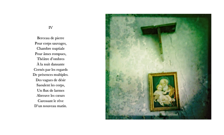 La Collection Maison Poésie Brest des Editions QazaQ particulièrement fiers d’inaugurer avec « Via Crucis », ce dialogue extraordinaire entre poésie et photographies qui, d’un bout à l’autre de ce vertigineux chemin de croix, explore l’ambivalence entre spiritualité profonde et amour terrestre. Cette austérité brûlante, entre amour sacré et profane, semble mettre en vis-à-vis la Beauté par opposition à l’éphémère, la permanence et l’idéal par opposition au sensible, au périssable. Et si la beauté, dépouillée d’ornement terrestre, est au-delà du décor, cette opposition entre le sacré et le profane génère ici une poésie sublime, où la fragilité terrestre est transcendée par l’amour céleste.