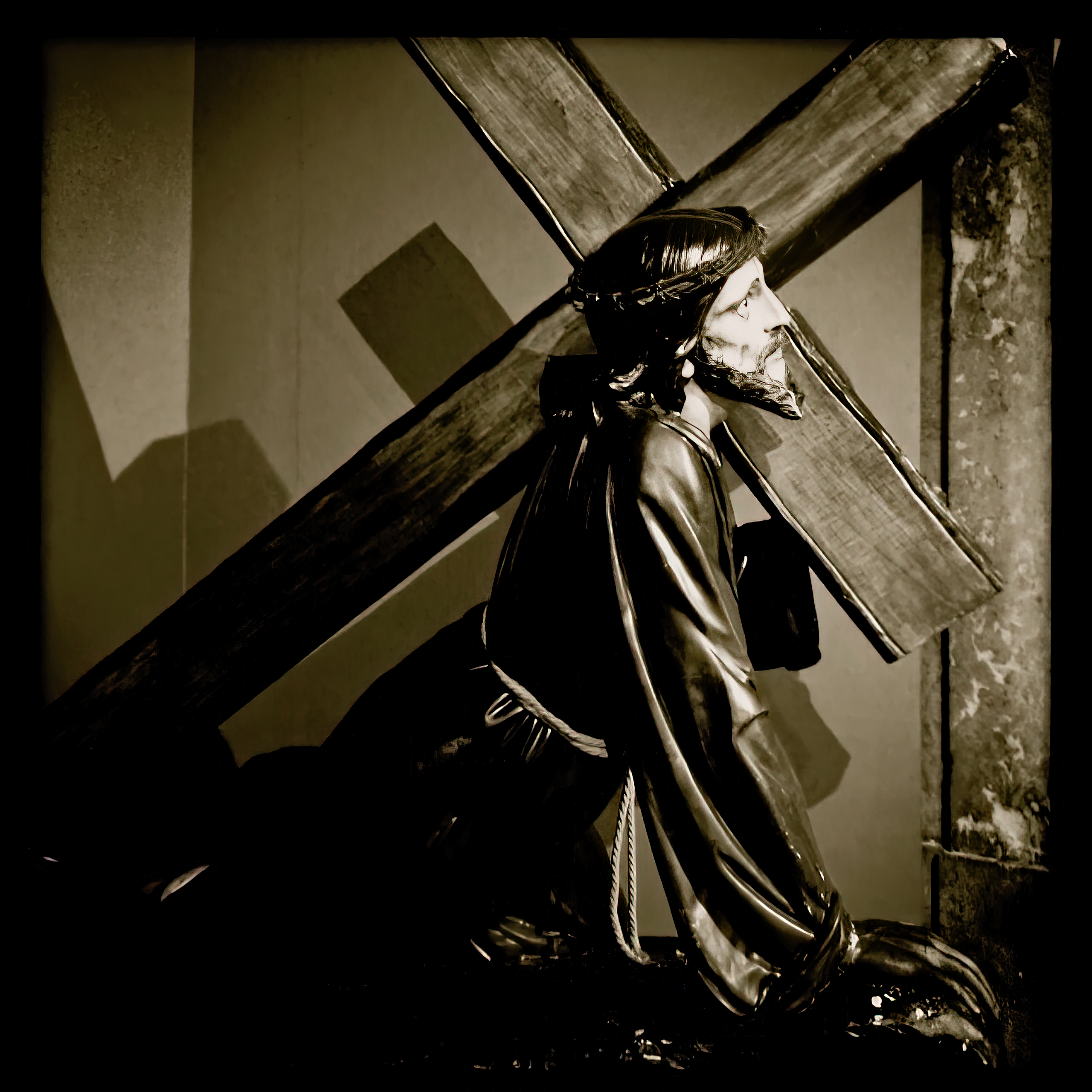 Via Crucis est un acte dévotionnel, l’expression d’un amour total, se projetant au-delà de sa propre réalité et de ses protagonistes, quels qu'ils soient, pour transcender l’extase, la béatitude, les peines et les ruptures qui le définissent. Un amour entier qui choisit ultimement la lumière d’avoir existé au désarroi de ne plus être. Bruno Green / Lennoxville, Qc / janvier 2025 |